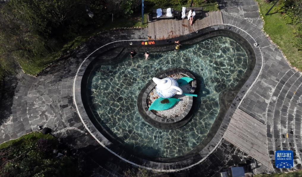 10月31日,游客在貴州省畢節市百里杜鵑管理區彝山花谷景區泡溫泉(無(wú)人機照片)。