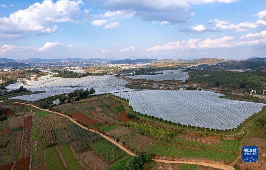 這是10月30日在昭通市拍攝的一處蘋(píng)果基地(無(wú)人機照片)。