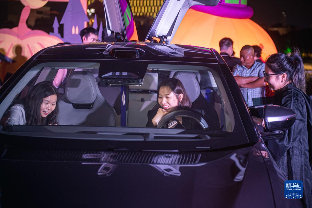 10月31日,游客在寧波老外灘步行街舉行的車(chē)展上體驗新能源汽車(chē)。