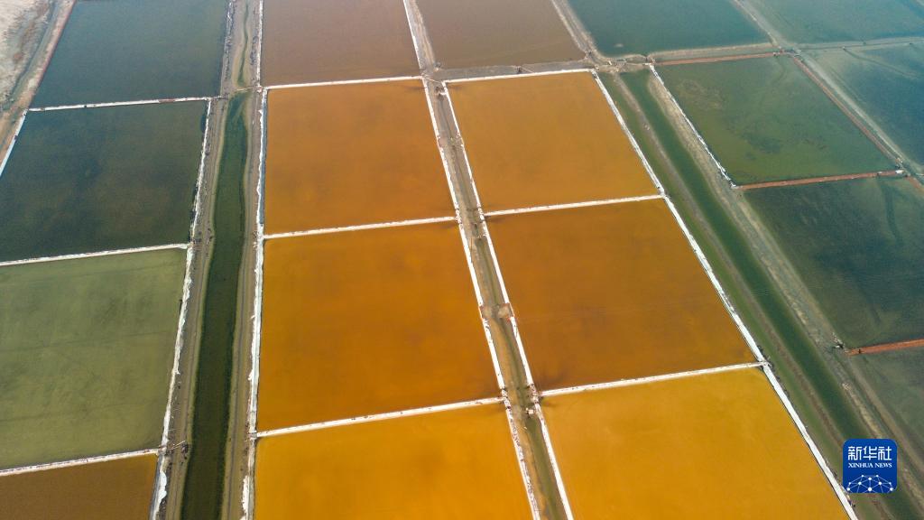 深秋時(shí)節,遼寧省營(yíng)口市老邊區的鹽田色彩斑斕,宛如大地的調色板,美不勝收。