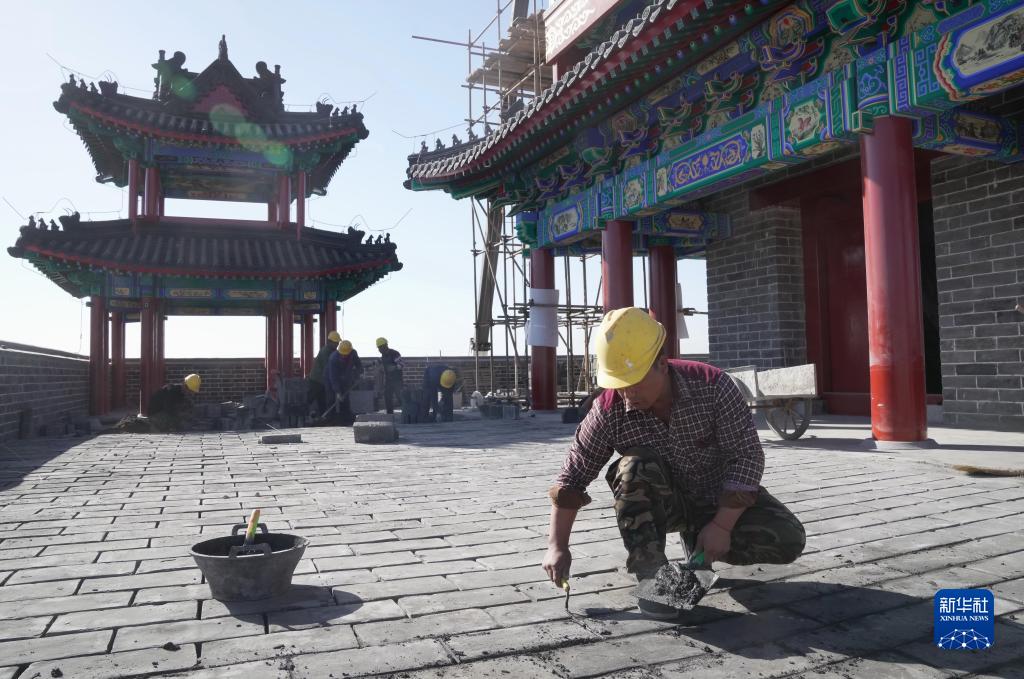 11月1日,工人在河北省張家口市萬(wàn)全右衛城長(cháng)城國家文化公園文旅融合區項目建設工地施工。