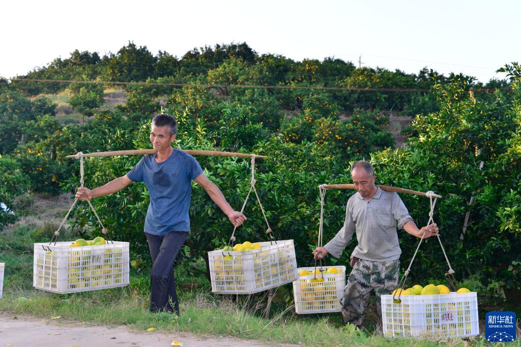11月1日,瑞金市黃柏鄉太坊村村民在運送采摘的臍橙。