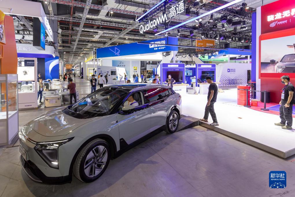 11月2日,一輛搭載高通芯片的智能電動(dòng)汽車(chē)準備駛向高通展位。