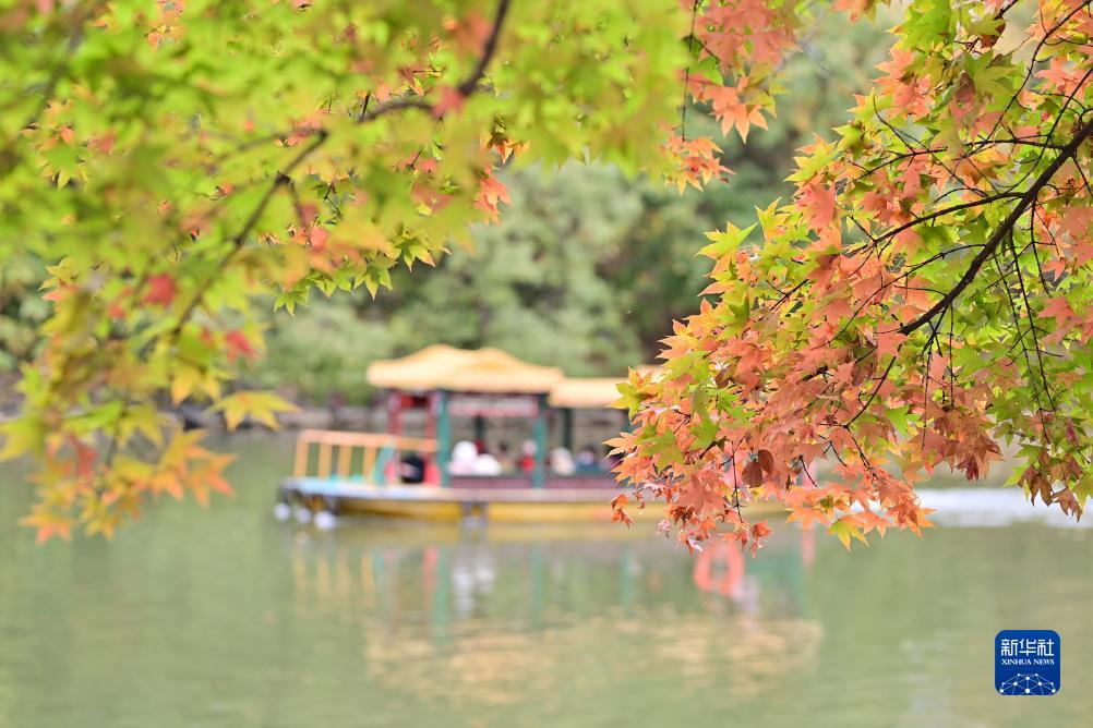 11月3日,游人在北京頤和園后湖乘船觀(guān)賞紅葉。