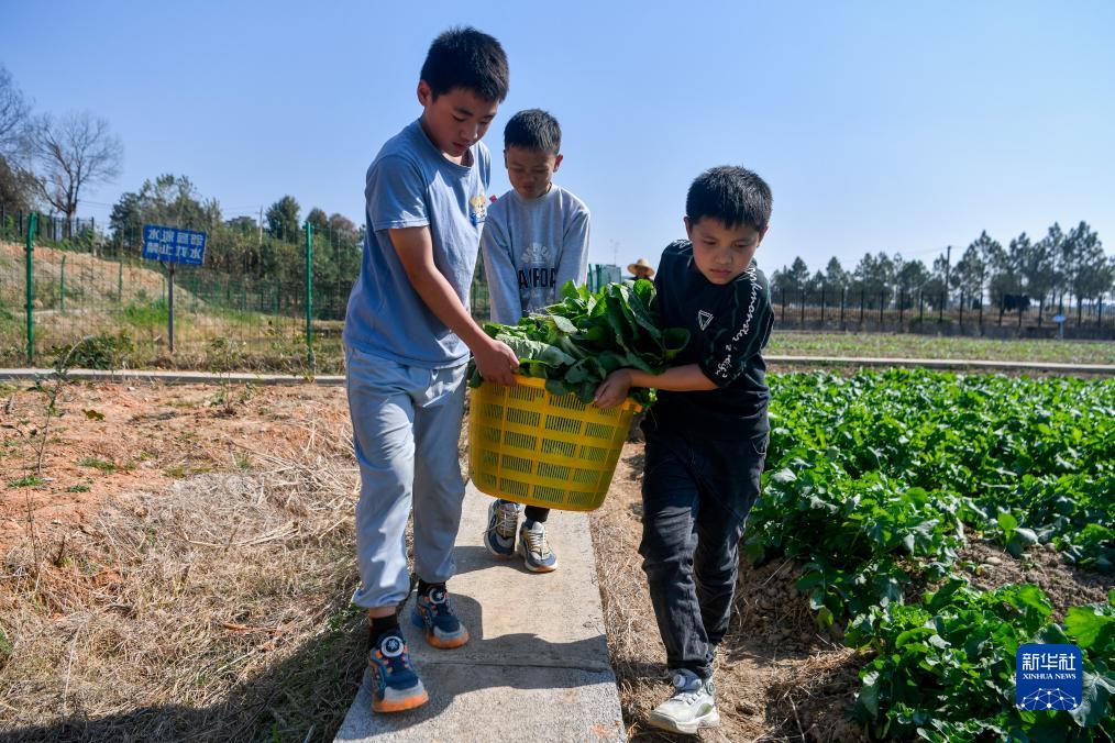 11月2日,在黃梅縣湯用彤學(xué)校思源校區,學(xué)生在種植園內上勞動(dòng)課。