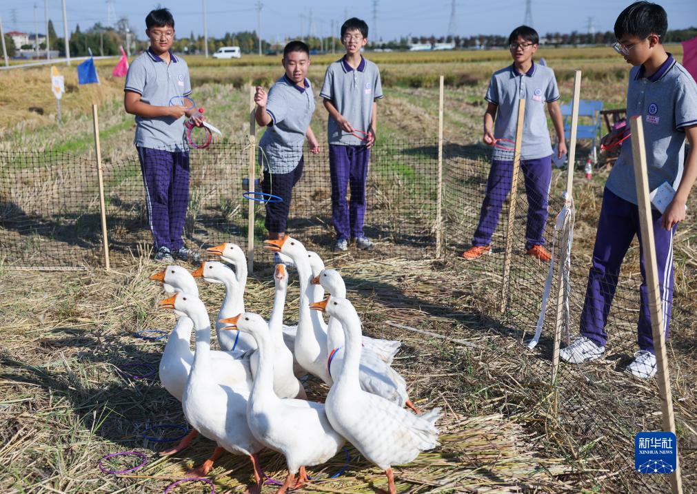 11月2日,浙江省杭州市余杭區徑山鎮前溪村舉行豐收節活動(dòng),現場(chǎng)展示了當地特產(chǎn)、美食、文創(chuàng )產(chǎn)品等,游客還能體驗南瓜保齡球、大鵝套圈、稻田拔河、割稻子等鄉間農趣活動(dòng)。近年來(lái),前溪村依托萬(wàn)畝稻田發(fā)展智慧農業(yè)和鄉村特色文旅產(chǎn)業(yè),走出一條“風(fēng)景引流、共同富?!钡恼衽d之路。