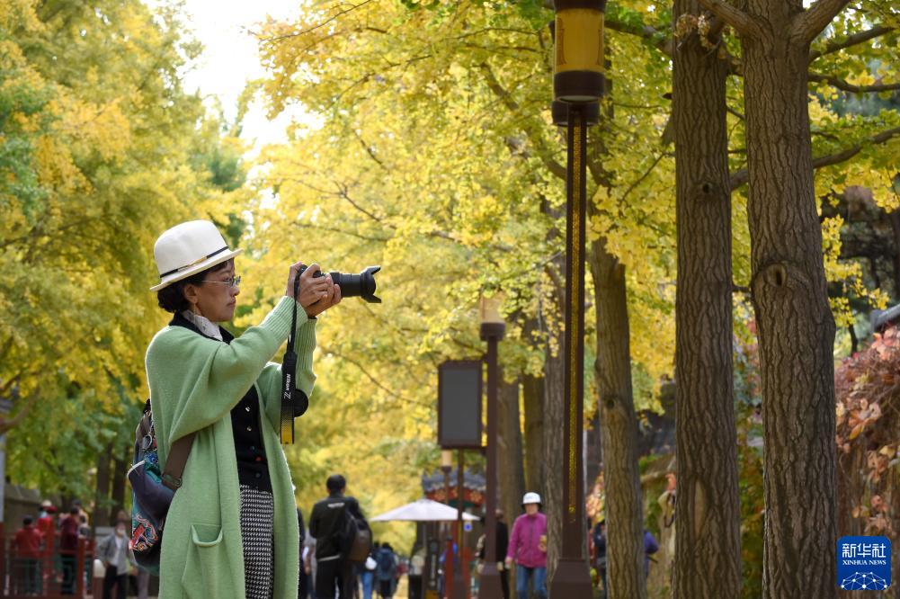 11月3日,游客在圓明園銀杏大道拍照。