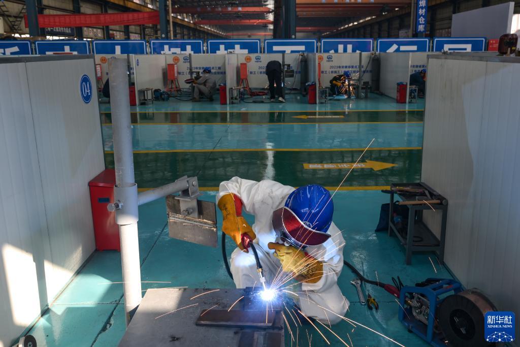 當日,2023年安徽省重點(diǎn)工程職工(農民工)電焊工職業(yè)技能競賽在合肥舉行,來(lái)自安徽省重點(diǎn)工程建設崗位上的40名青年焊接能手在比賽中各展絕活、比拼職業(yè)技能。