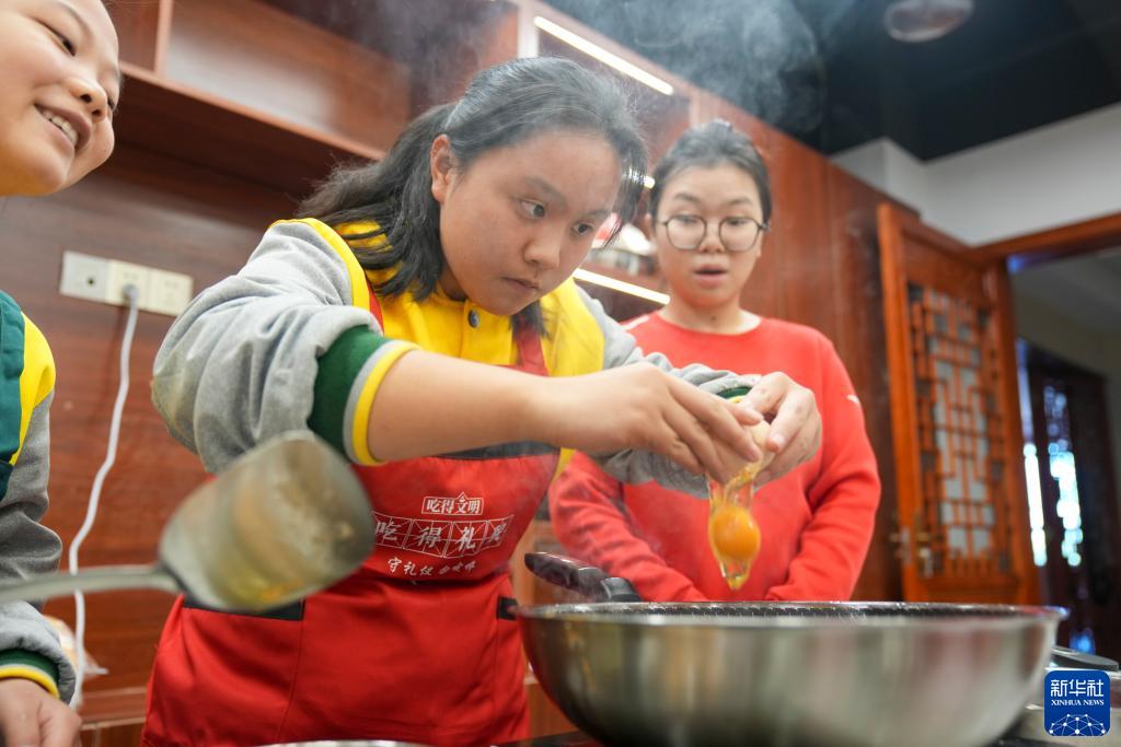 10月30日,在重慶市特殊教育中心的勞動(dòng)課教室內,一名三年級的視力障礙學(xué)生在老師的指導下學(xué)習煎雞蛋。