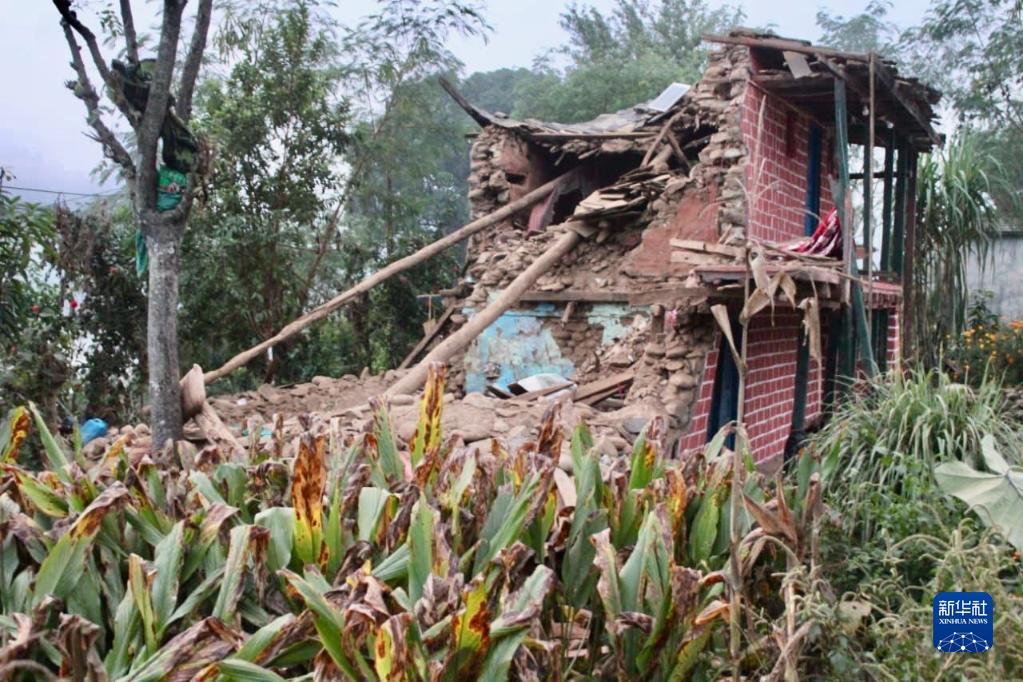 這是11月4日在尼泊爾西部扎澤爾果德拍攝的被地震損毀的房屋。