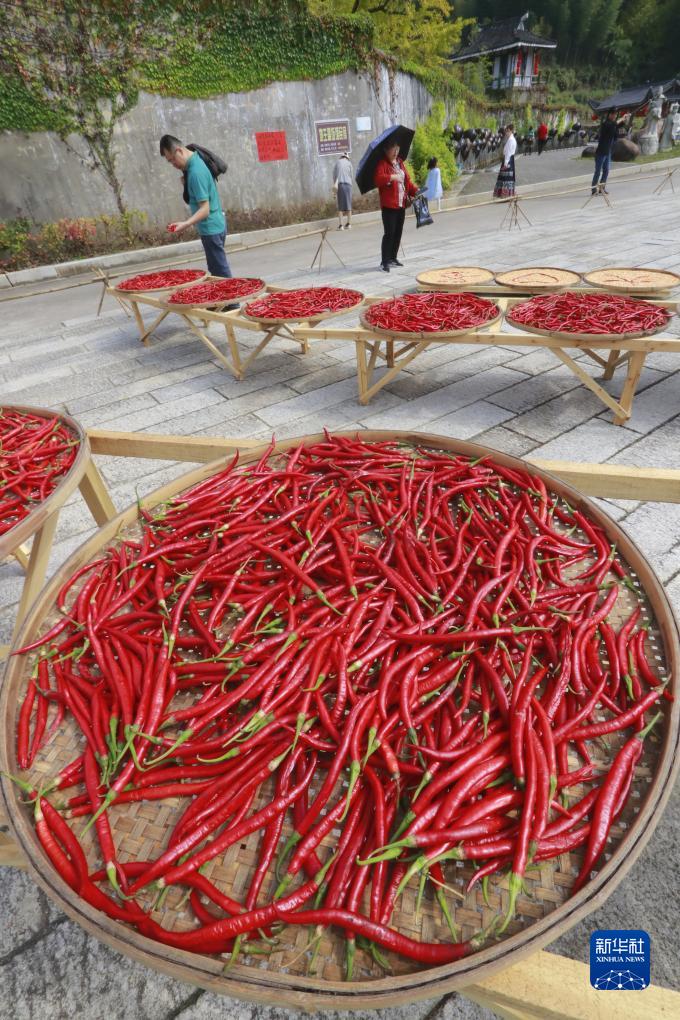 秋收時(shí)節,農民利用晴好天氣在房前屋后晾曬農作物,一派豐收景象。