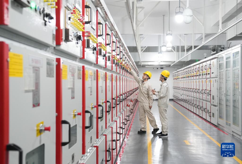 11月4日,國網(wǎng)上海青浦供電公司工作人員在變電站內巡視。