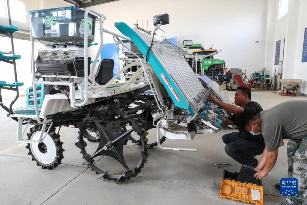 11月4日,技術(shù)員在南通市通州區十總鎮育民村農場(chǎng)保養無(wú)人插秧機設備。