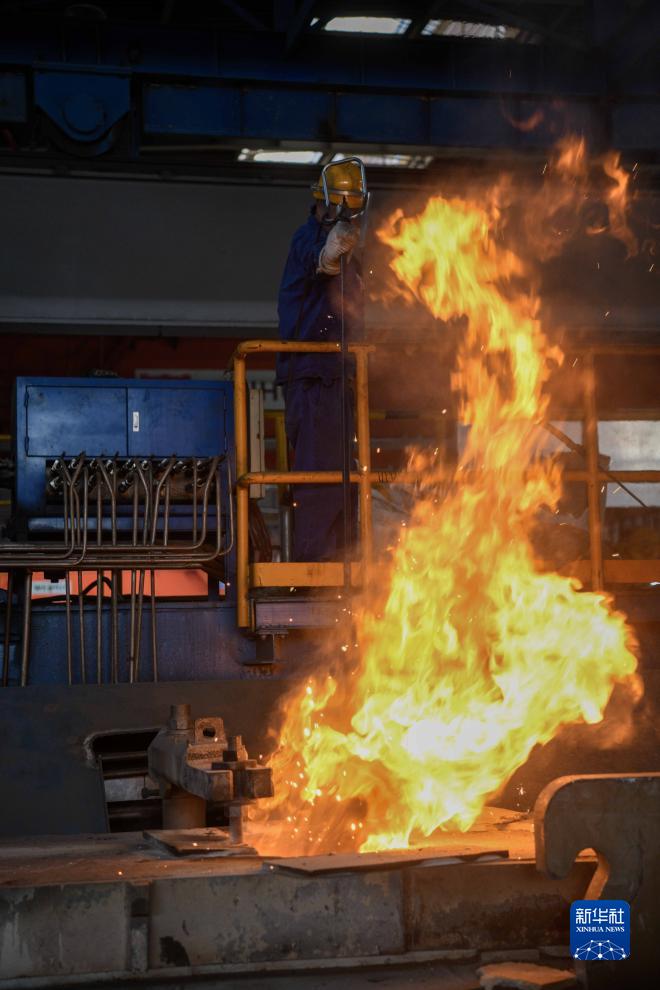 11月4日,在承德市營(yíng)子區一家特殊鋼生產(chǎn)企業(yè),工人在測量熔爐溫度。