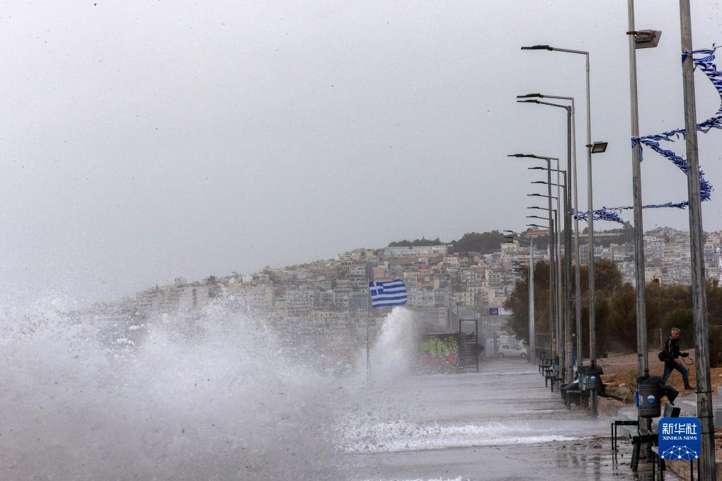 這是11月4日在希臘雅典海邊拍攝的大浪。