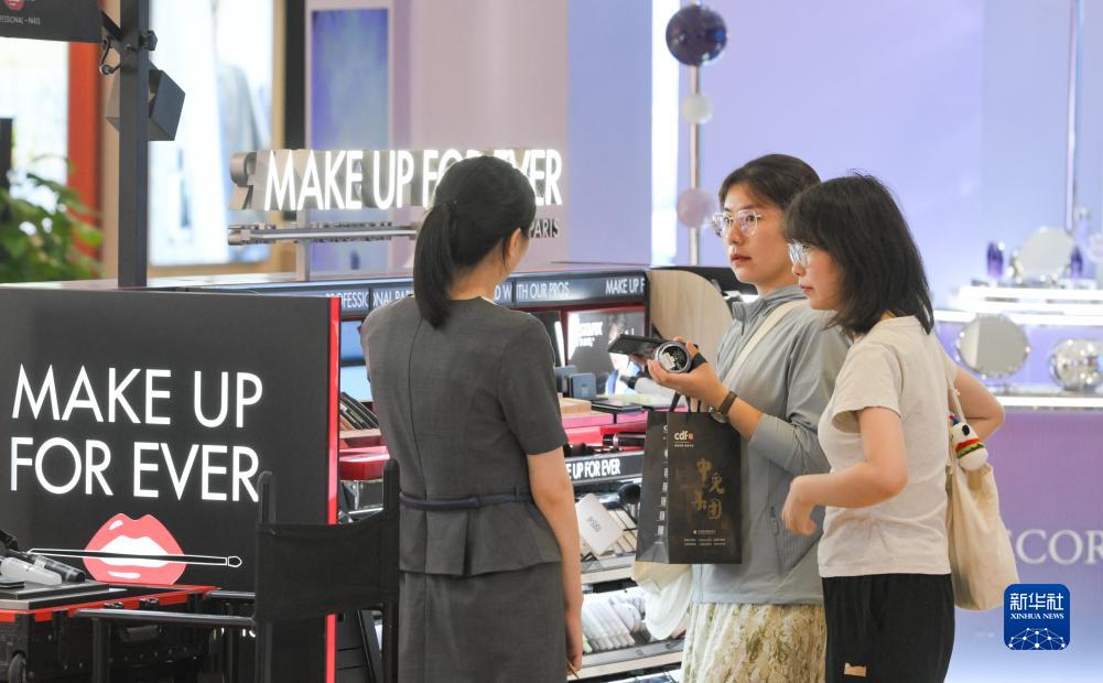 游客在中免集團??谌赵聫V場(chǎng)免稅店選購商品(7月12日攝)。
