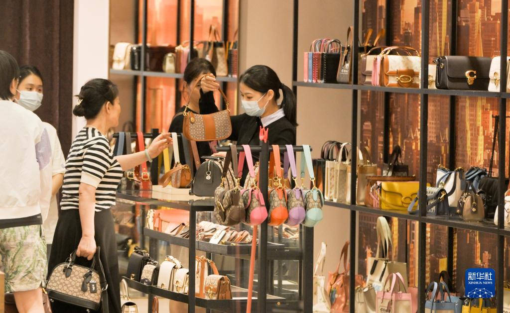 游客在中免集團??谌赵聫V場(chǎng)免稅店選購商品(8月5日攝)。