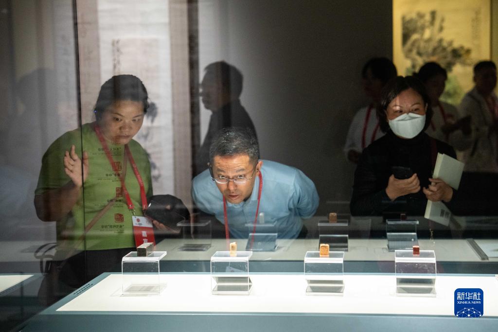 11月5日,在湘潭市博物館,觀(guān)眾在觀(guān)看齊白石印章作品。