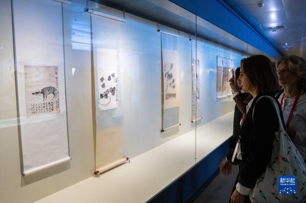 11月5日,在湘潭市博物館,觀(guān)眾在觀(guān)看齊白石作品。