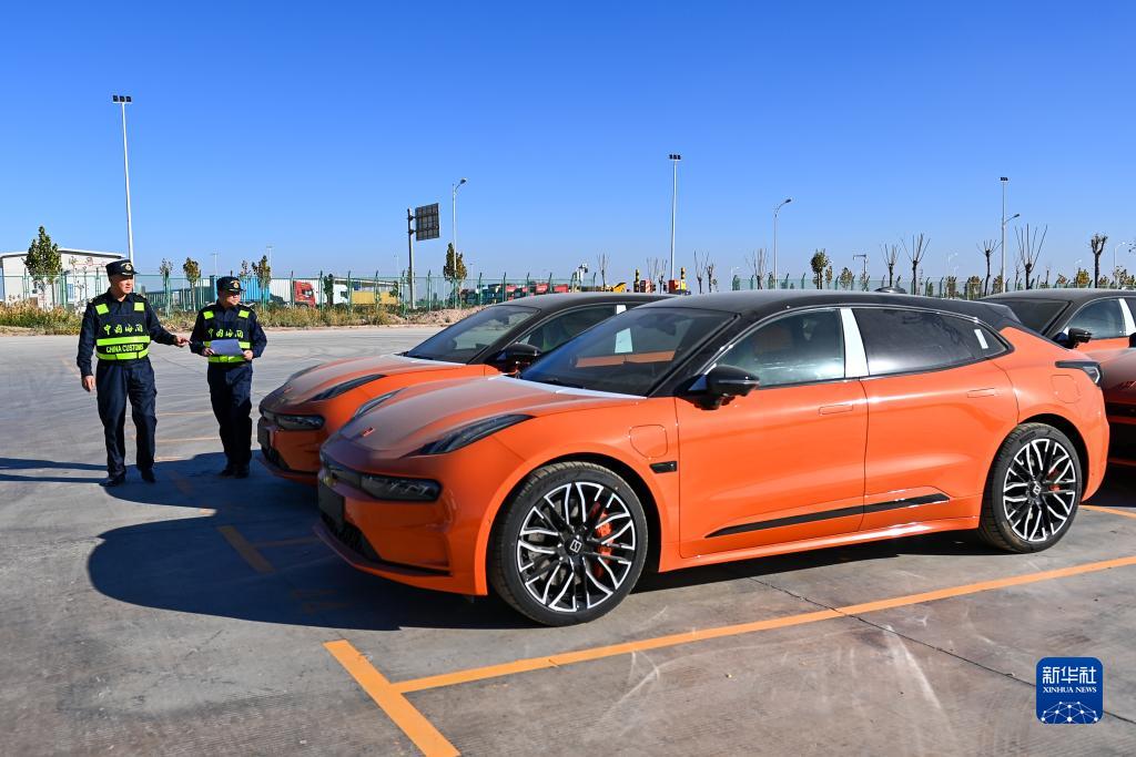 海關(guān)關(guān)員在新疆喀什綜合保稅區內的海關(guān)施封集中查驗作業(yè)區查驗出口商品車(chē)(11月4日攝)。