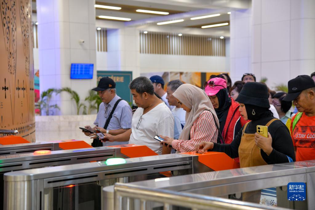 11月5日早,在印度尼西亞雅加達哈利姆站候車(chē)大廳,人們刷票準備前往站臺乘坐當日第一班高鐵。