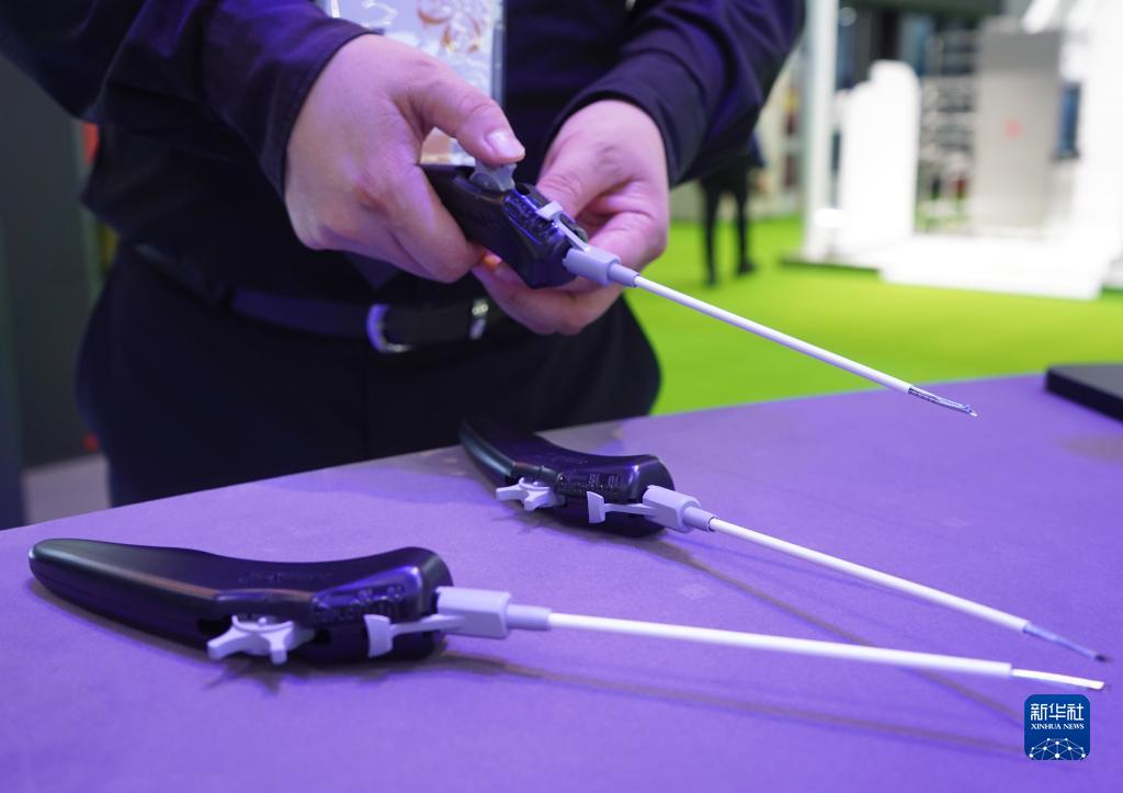 11月5日在第六屆進(jìn)博會(huì )醫療器械及醫藥保健展區Arthrex展臺拍攝的半月板全縫線(xiàn)縫合系統。