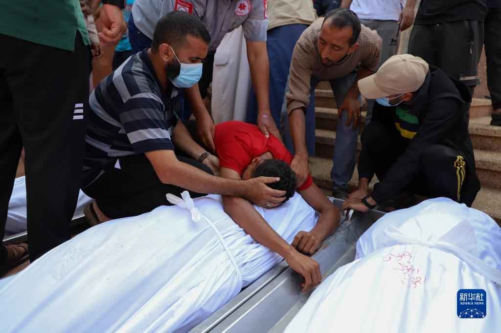 11月5日,在加沙地帶南部城市汗尤尼斯,人們悼念在沖突中去世的親友。