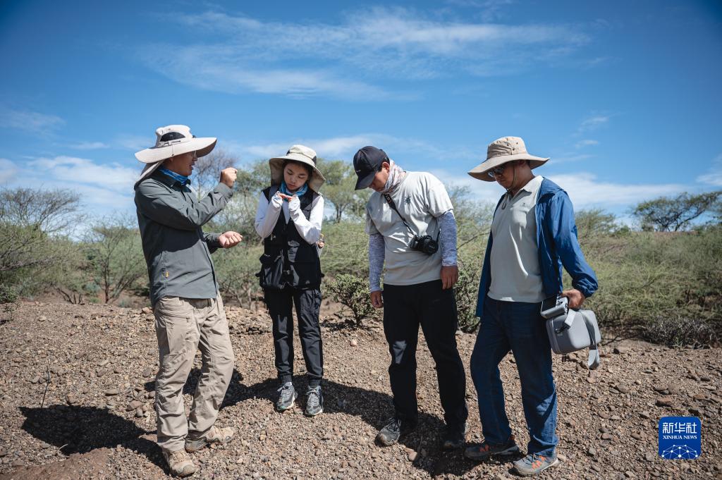 11月4日,中肯聯(lián)合考古隊隊員在位于肯尼亞巴林戈郡馬里加特鎮的考古現場(chǎng)周邊區域進(jìn)行野外調查。