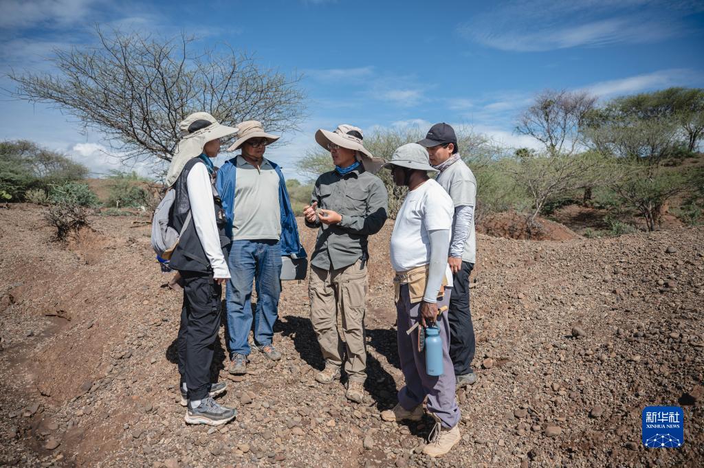 11月4日,中肯聯(lián)合考古隊隊員在位于肯尼亞巴林戈郡馬里加特鎮的考古現場(chǎng)周邊區域進(jìn)行野外調查。