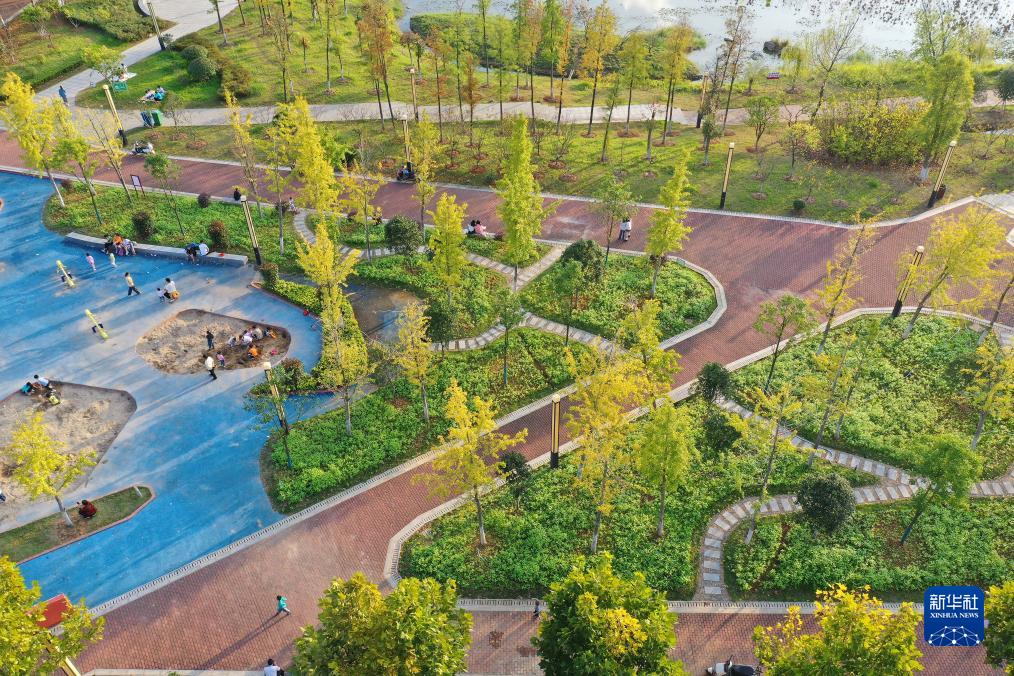 11月4日,人們在湖南省永州市道縣紹基公園休閑游玩(無(wú)人機照片)。