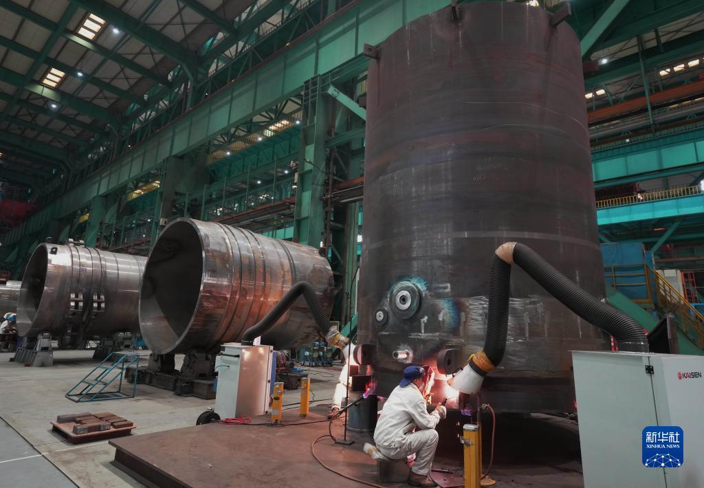 11月5日,工人在秦皇島經(jīng)濟技術(shù)開(kāi)發(fā)區哈電集團(秦皇島)重型裝備有限公司的生產(chǎn)車(chē)間工作。