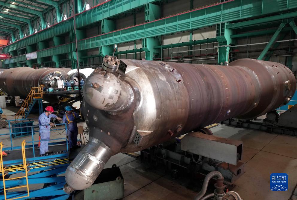 11月5日,工人在秦皇島經(jīng)濟技術(shù)開(kāi)發(fā)區哈電集團(秦皇島)重型裝備有限公司的生產(chǎn)車(chē)間工作。