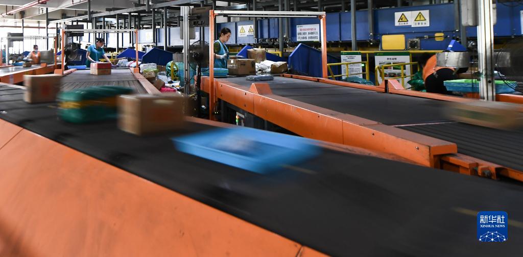 11月6日,在中國郵政集團有限公司??卩]區中心,工作人員在分揀包裹。