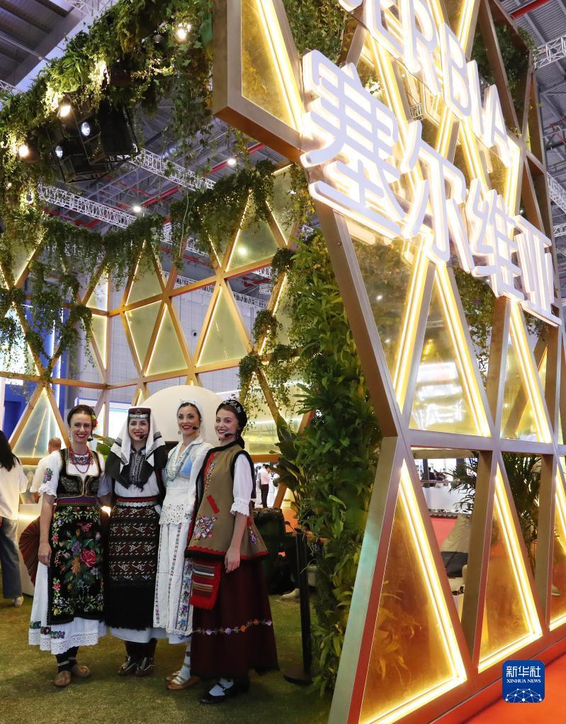 11月6日,身著(zhù)傳統服飾的演職人員在第六屆進(jìn)博會(huì )國家展塞爾維亞展臺迎接參觀(guān)者。