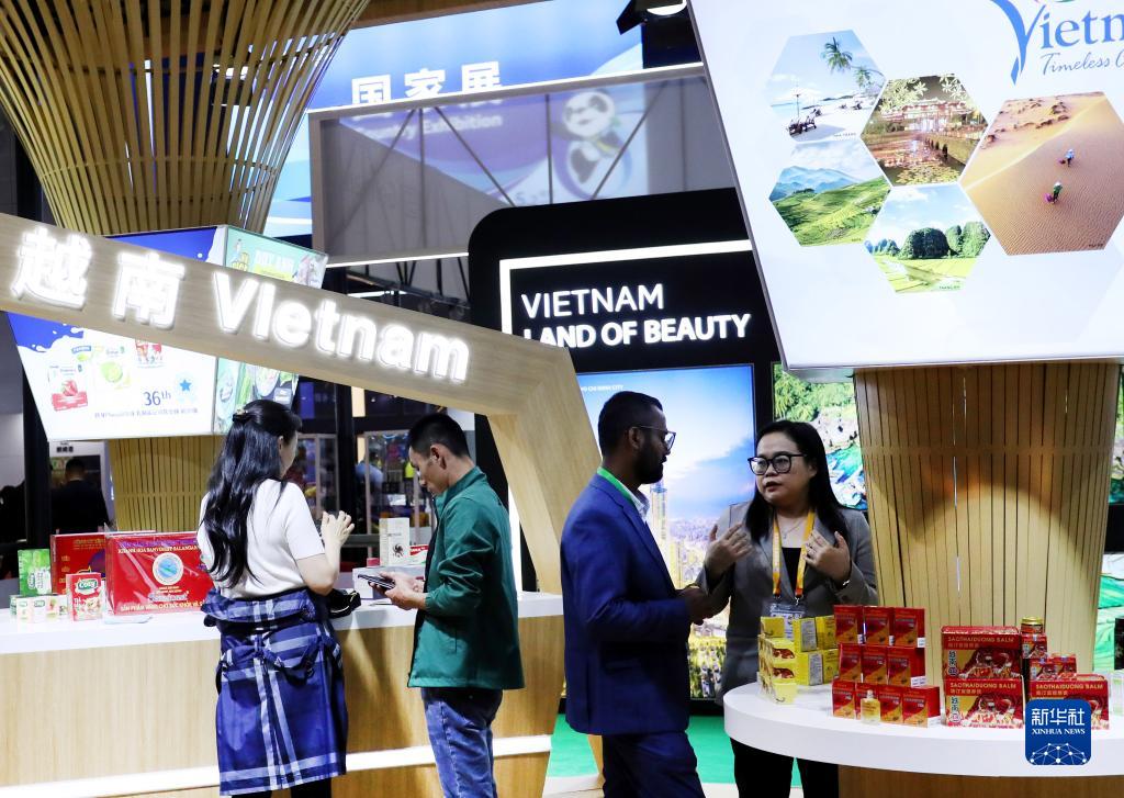這是11月6日拍攝的第六屆進(jìn)博會(huì )國家展越南展臺外景。