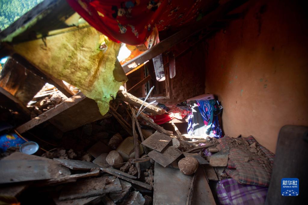 這是11月6日在尼泊爾西部扎澤爾果德地震災區拍攝的建筑物廢墟。