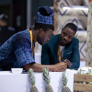 11月6日,在第六屆進(jìn)博會(huì )食品及農產(chǎn)品展區,貝寧投資和出口促進(jìn)局工作人員(左)在接待前來(lái)咨詢(xún)的客戶(hù)。