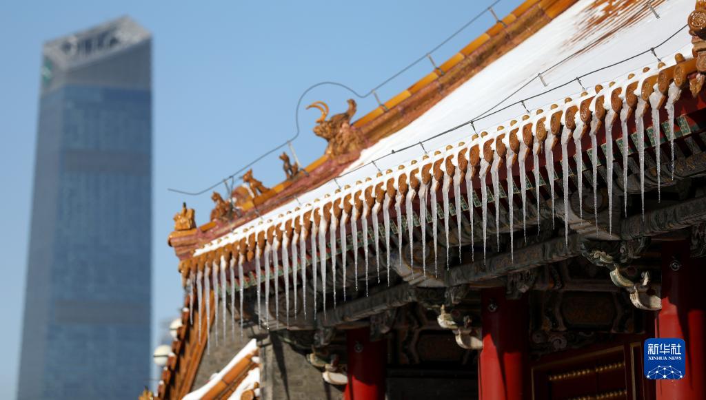 這是11月7日拍攝的雪后沈陽(yáng)故宮一處屋檐。