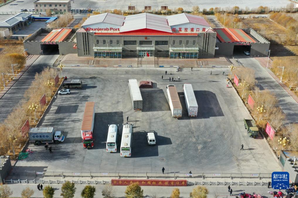 這是11月6日拍攝的新疆紅其拉甫口岸聯(lián)檢大廳(無(wú)人機照片)。