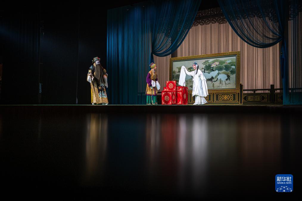 10月28日,漢劇演員鄒雨含(右)、蔣志萱(中)、侯睿駿在演出。