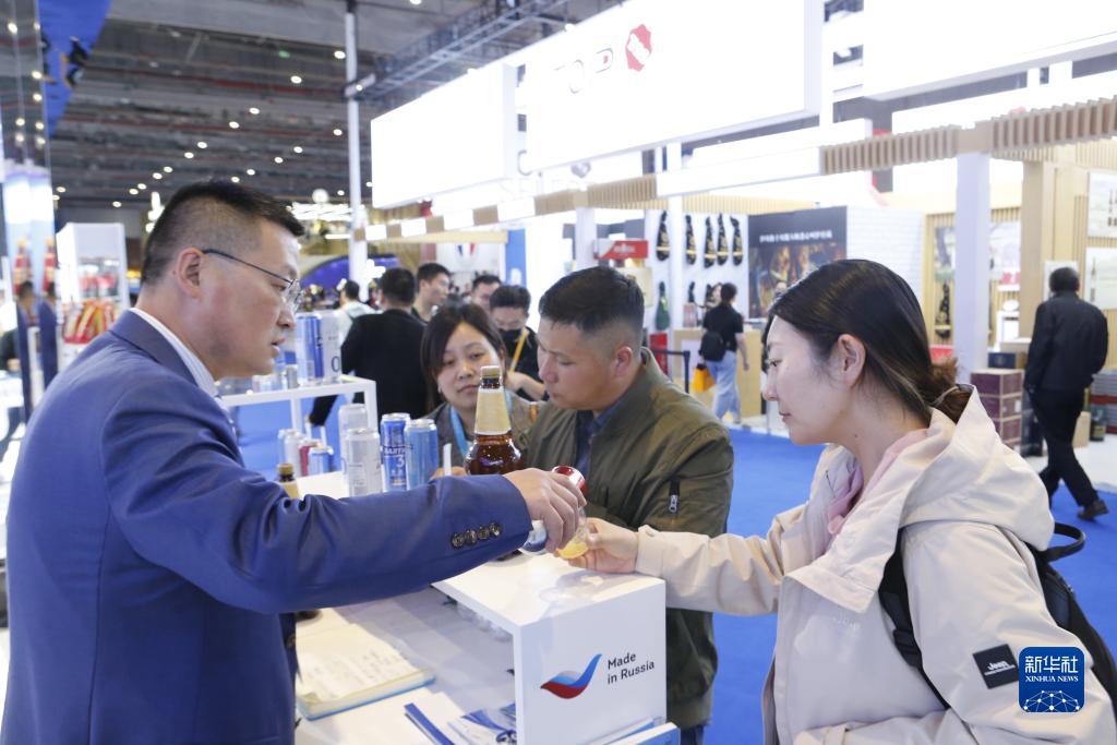 11月7日,在第六屆進(jìn)博會(huì )食品及農產(chǎn)品展區俄羅斯出口中心展臺,參觀(guān)者品嘗來(lái)自俄羅斯的波羅的海啤酒。