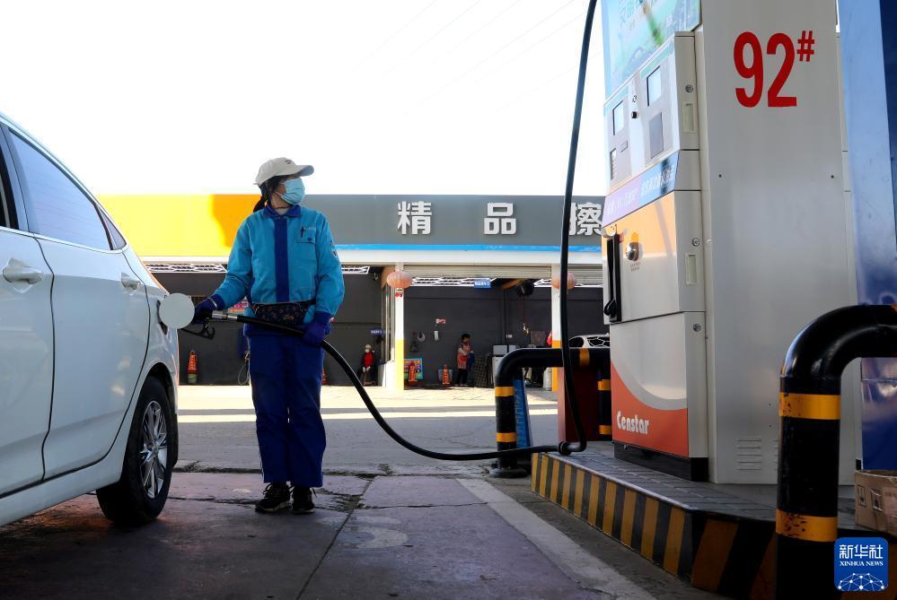 11月7日,山東省滕州市一加油站工作人員在給汽車(chē)加油。