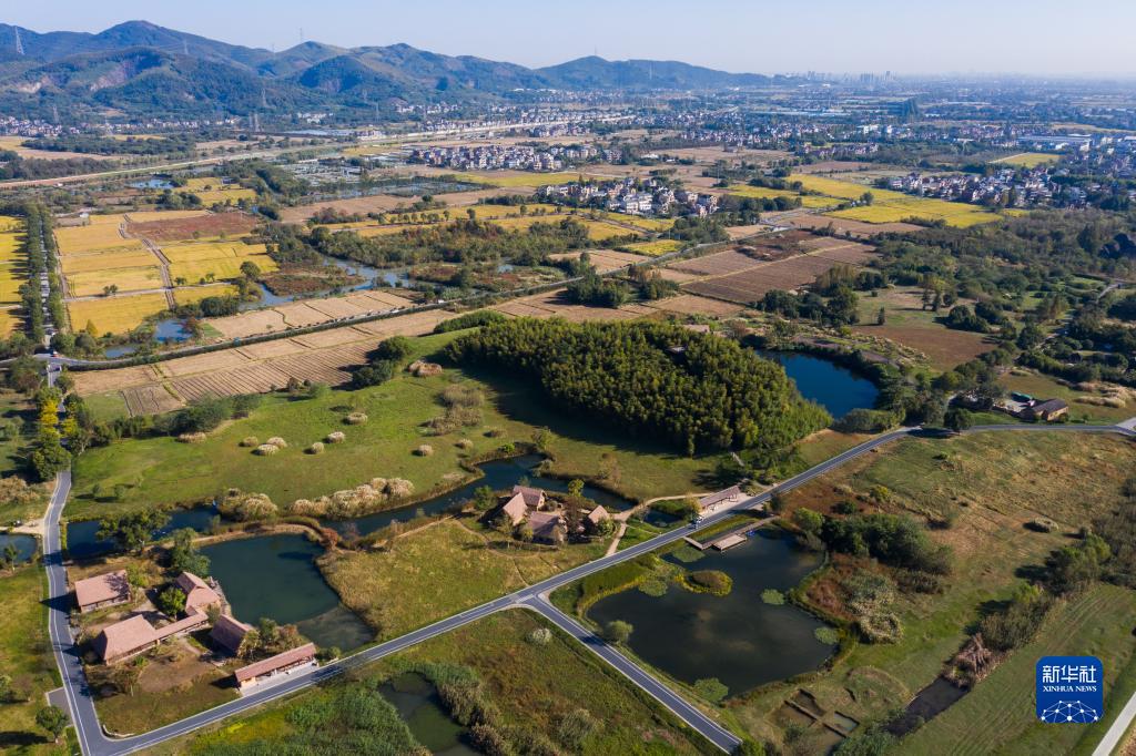 11月7日拍攝的良渚古城遺址公園(無(wú)人機照片)。