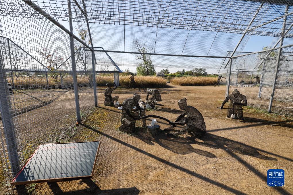 11月7日拍攝的良渚古城遺址公園內鐘家港古河道旁的居址作坊展示區。