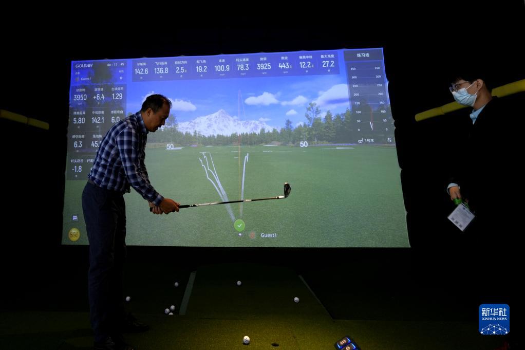 11月7日,在第六屆進(jìn)博會(huì )技術(shù)裝備展區,觀(guān)眾體驗“互動(dòng)高爾夫球”。