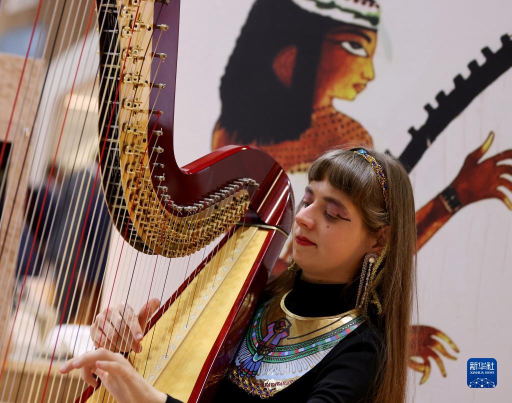 11月6日,一名女子在2023年英國倫敦世界旅游交易會(huì )埃及展區表演。