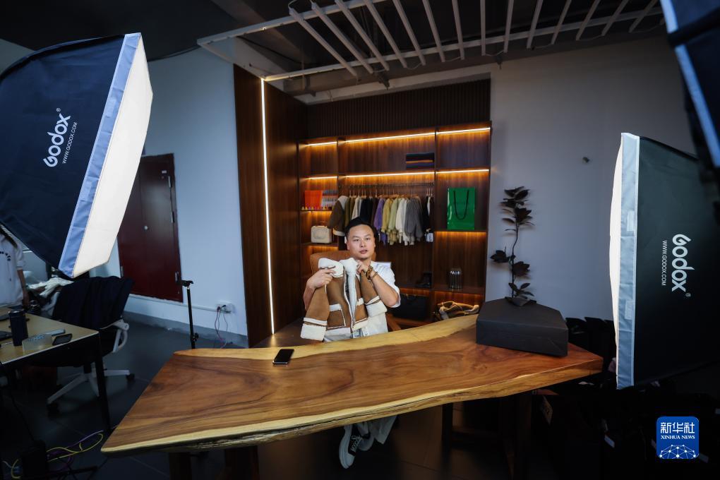 11月8日,湖州慕橙服飾有限公司負責人游恒通過(guò)直播銷(xiāo)售新款童裝。