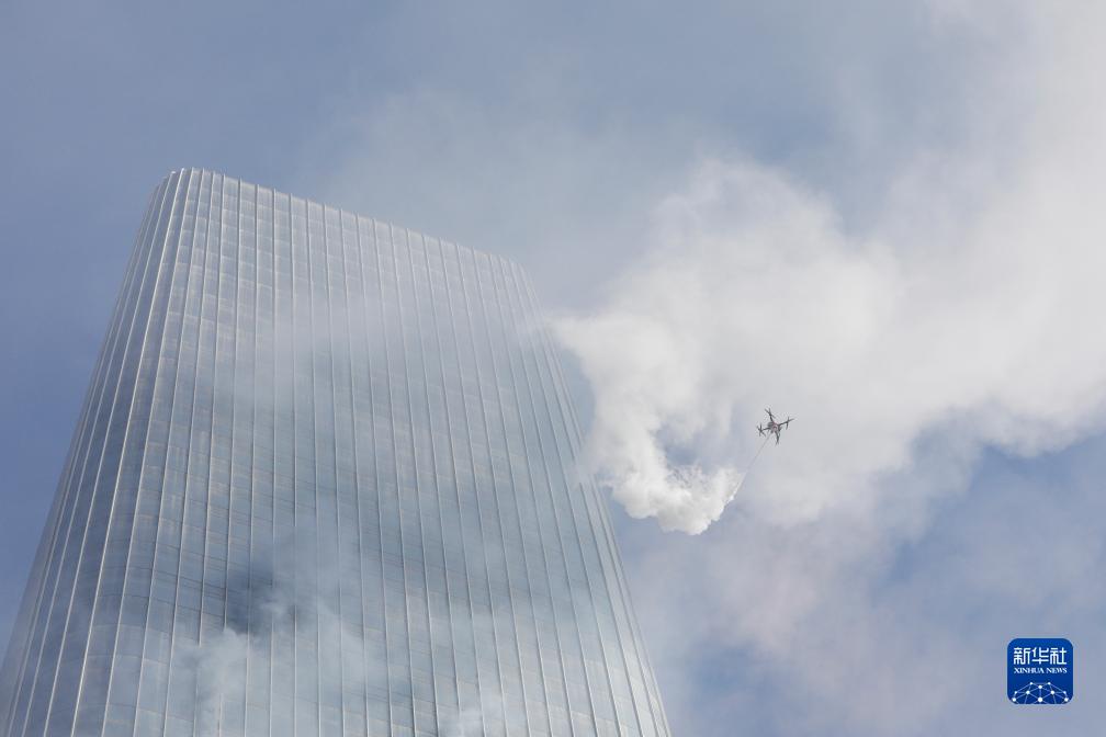 11月8日,高噴滅火無(wú)人機進(jìn)行高層建筑滅火救援實(shí)戰演練。