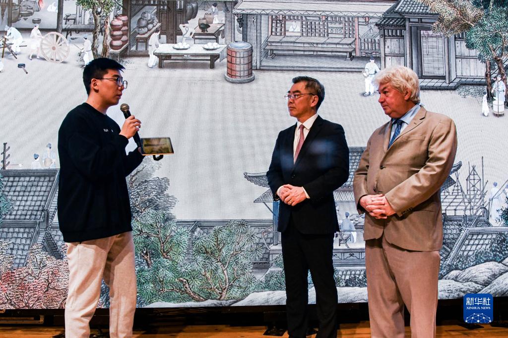 11月6日,在美國波士頓,來(lái)賓聽(tīng)取“園見(jiàn)南京”文化主題藝術(shù)展介紹。
