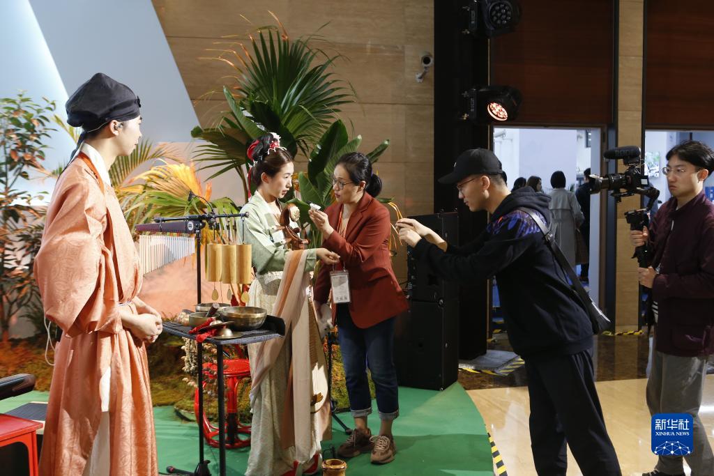 11月8日,在進(jìn)博會(huì )新聞中心,記者在民族室內音樂(lè )會(huì )后進(jìn)行采訪(fǎng)。